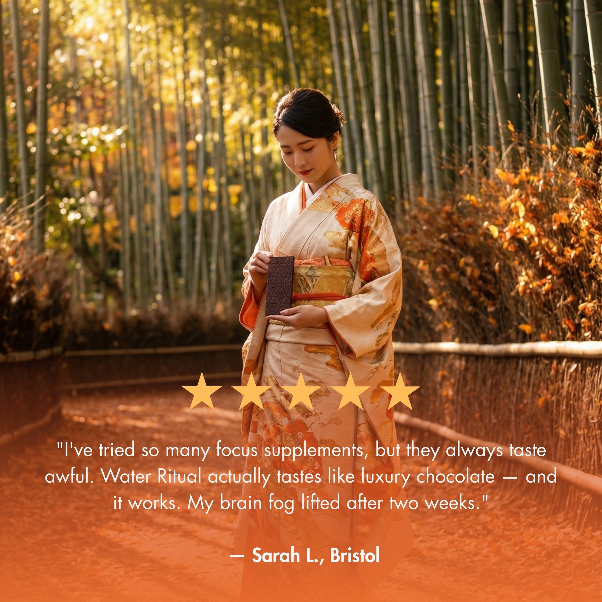 Inspired by the TCM principle of the Water element — which governs willpower, memory, and flow — we crafted a chocolate bar that works with your brain, not against it.