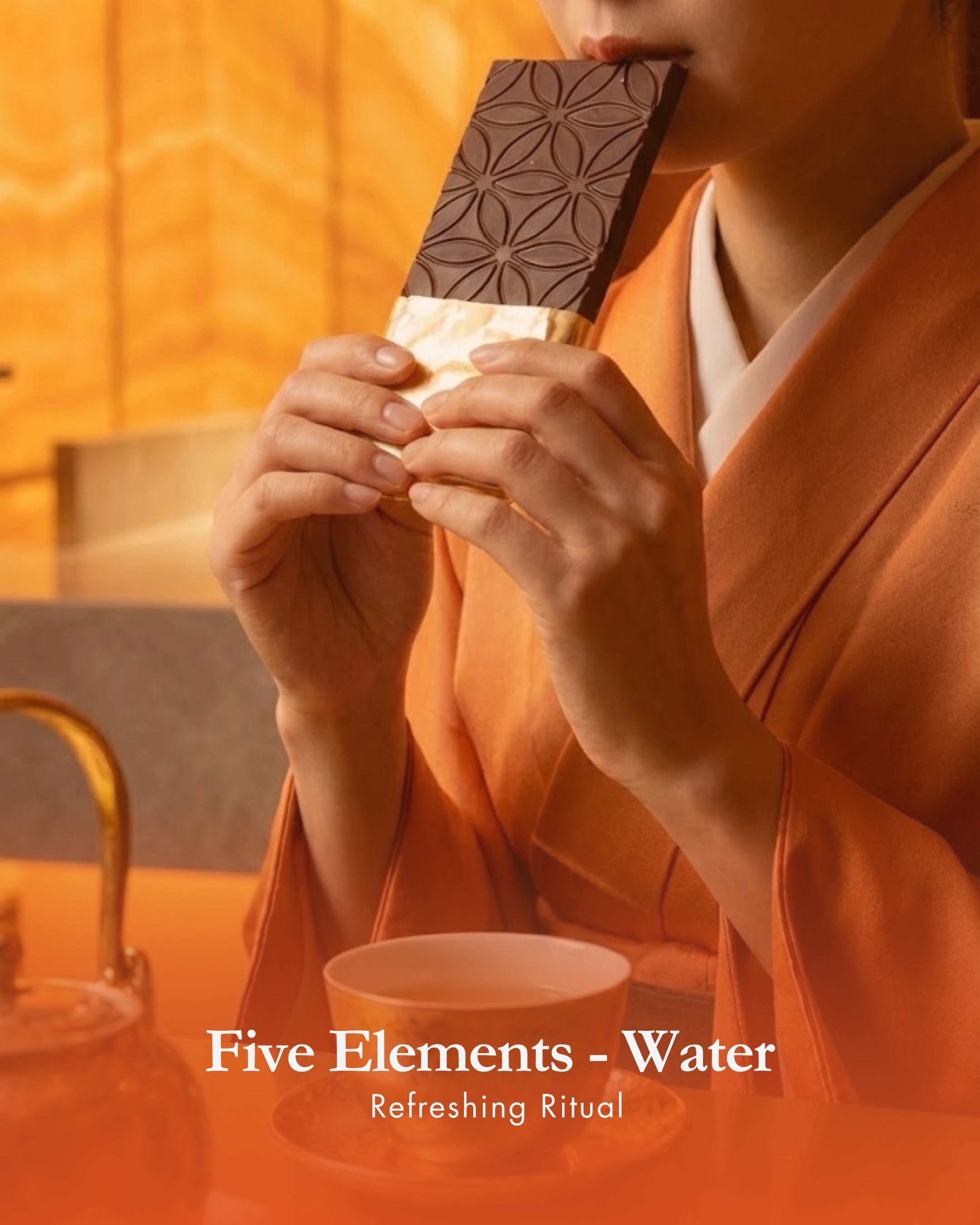 Dark indulgence meets botanical clarity | 54.5% superior cacao | Inspired by TCM’s Water element | Ethically crafted in the UK